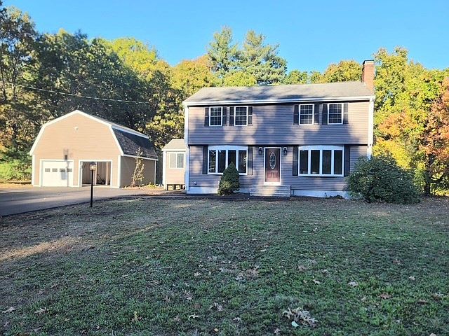 Beautifully situated on serene cul-de-sac in a sought-after area near shops & highways, this impeccable, completely renovated home on an acre lot offers abundant space both inside & out. Even the 2 car garage is large & boasts a loft -- great added space for potential studio, gym, etc. New features also include: vinyl siding, electric & more. Inside, a breezy & open 1st level floor plan is highlighted by gleaming hardwood floors, a lovely neutral décor & recessed lighting. You won’t miss a beat entertaining & serving meals in the stylish kitchen, outfitted with sleek quartz counters & island that opens to dining room with bow window. The living room, also with a bow window, adds another bright gathering space. Plus, there’s great flexibility with the bedroom & full bath also on this level. Upstairs you will find 4 comfortable bedrooms & full bath. The acre lot boasts generous space to garden, relax & gather: an inviting setting that balances privacy & proximity to everything you need.