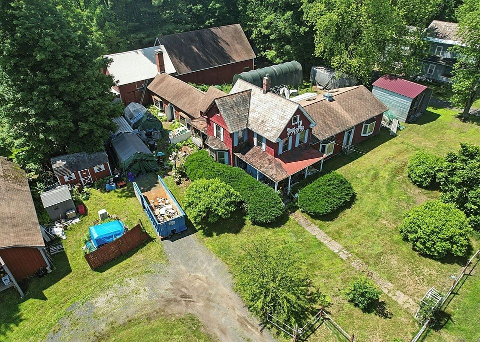 Antique farm houseCorner lotPortable storage structuresOld-world charmTin ceilingsTwo barns