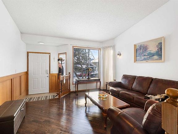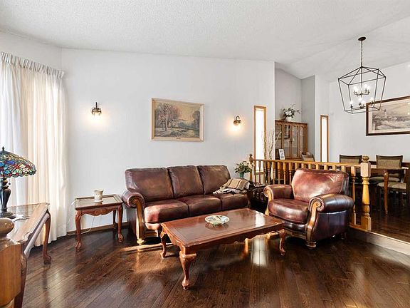 Discover this well-maintained detached home on a quiet street in Monterey Park. This charming 3-level split offers over 2,300 sq ft of thoughtfully designed living space, complete with 4 bedrooms, 2.5 baths, and a double attached garage. The main floor welcomes you with beautiful hardwood flooring and a bright, spacious living room highlighted by large south-facing windows. The kitchen impresses with warm wood cabinetry, quartz countertops, and a cozy breakfast nook framed by expansive windows. Just steps away, the inviting family room features a wood-burning fireplace, perfect for relaxed evenings at home. Upstairs, you’ll find three generously sized bedrooms, including the primary retreat with a walk-in closet and a private 3-piece ensuite. The fully finished basement adds even more versatility, offering a large recreation room and a fourth bedroom - ideal for guests, teens, or a home office. This home is poly-b free, providing added peace of mind. Step outside to your own private oasis that includes a large deck and a 4.5-ft deep heated pool with a chlorine dispenser, ready for summer fun and memorable gatherings. The double attached garage pairs with a large driveway, offering ample parking for multiple vehicles. Situated close to schools, playgrounds, shopping, and dining, this property delivers exceptional comfort and convenience in a welcoming, family-friendly neighbourhood. Don’t miss your opportunity to make this wonderful home yours, book your private showing today