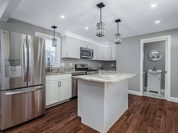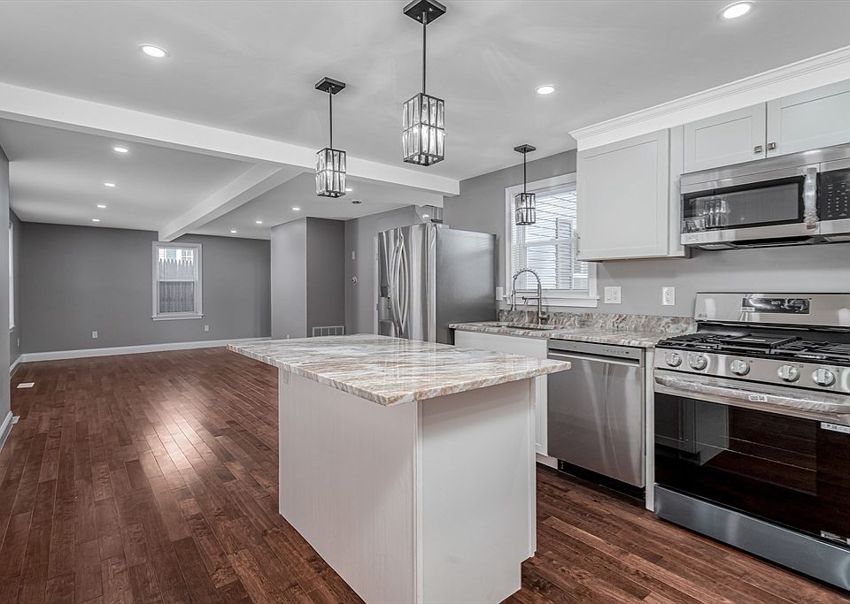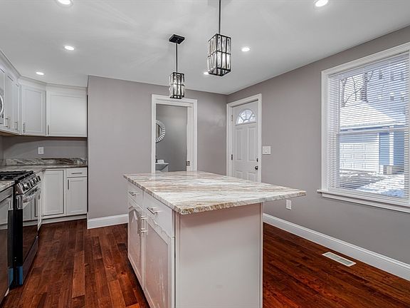 - Features: Bathroom - Half, Flooring - Hardwood, Countertops - Stone/Granite/Solid, Countertops - Upgraded, Kitchen Island, Cabinets - Upgraded, Exterior Access, Open Floorplan, Recessed Lighting, Remodeled, Gas Stove, Lighting - Pendant
