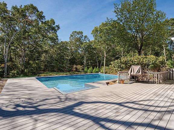 Minutes to Amagansett's quaint Main Street, world class ocean beaches, and top tier farm stands, this classic 4 bedroom saltbox style beach house with expansive deck and south-facing, heated pool is tucked away on a secluded acre-plus on a lane without through traffic. The home begins with a bright and voluminous living room with fireplace and French doors out to the deck and pool area. The open concept floor plan connects the living room with the dining area and eat-in kitchen with island seating. Two guest bedrooms and a full bath complete the main level. The upstairs offers two bedrooms, including the primary, and an updated bath. A unique opportunity in Amagansett to enjoy a secluded beach house and pool as is or bring your vision to own its next iteration.