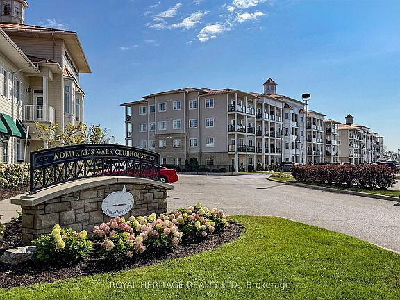 Bright and spacious 2 bedroom, 2 bathroom condo featuring an oversized balcony with unobstructed views of Lake Ontario. Steps to the waterfront trail with access to Wilmot Creek Nature Preserve offering 77 hectares of forest and scenic walking trails. Includes Gold Membership to the Admirals Club with indoor pool, lounge, games room and more. Unit shows like new with an open-concept layout, stainless steel appliances, granite counters, stylish backsplash, updated lighting, and fresh carpets. A must-see condo with resort-style amenities and an unbeatable location!