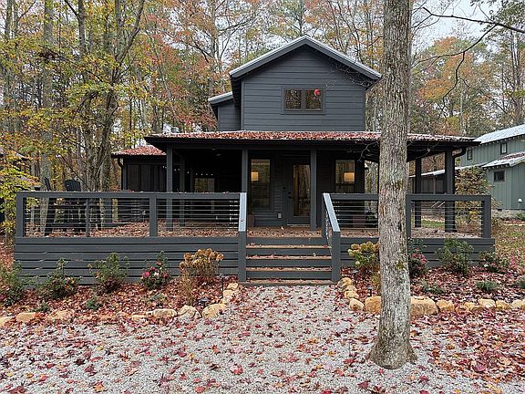 Full turn key, fully furnished, luxury tiny home located in The Retreat at Sunset Bluff, a gated community. Designer styling throughout with no expense spared on amenities - screened-in porch, fireplace, hot tub, fire pit, outdoor dining and seating area. An ideal 1031 property, rental setup, or "peace of mind" rural real estate investment. Maintenance and rental management team already in place if needed. Property is set up to where new owners could start renting or enjoying themselves on day one. Saltwater pool, play ground, sports courts, common areas still under construction in this development.