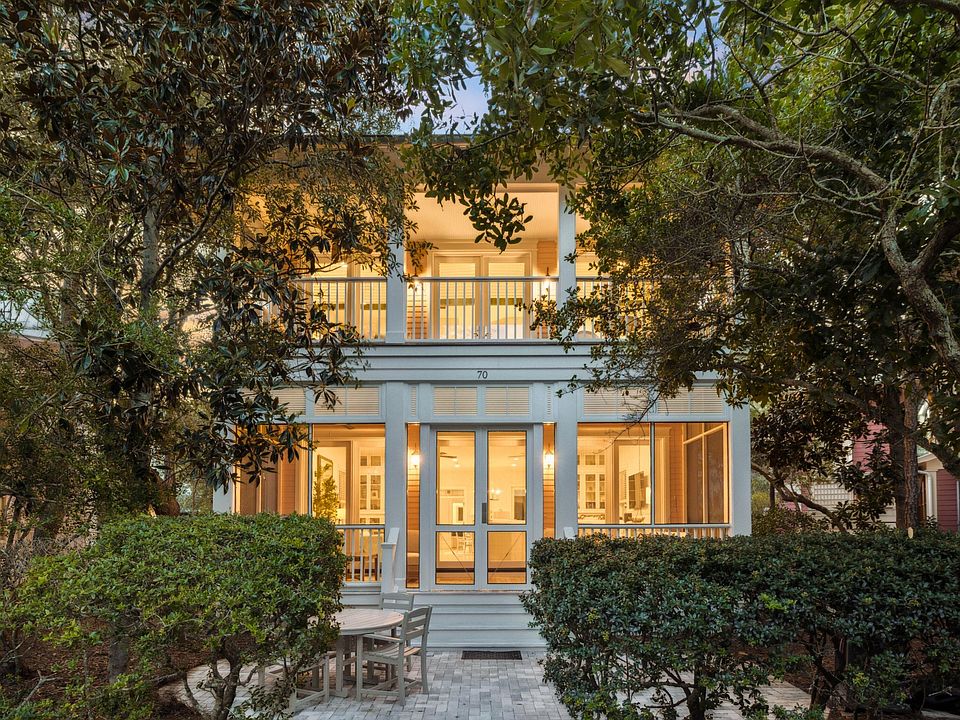 Tucked away in the coveted Park District of WaterColor Phase I, 70 Sunset Ridge Lane is light, bright, and open, having undergone a complete remodel in 2021 to pair the charm of classic coastal architecture with thoughtful modern updates. Located in the intimate Rose Garden Mews, one of only twelve homes encircling the lush and peaceful Crimson Park, this residence offers a rare blend of privacy and accessibility. Designed to bring the beauty of the outdoors inside, the home's serene setting is complemented by its proximity, less than 1,000 steps, to the WaterColor Beach Club, the WaterColor Hotel, and Marina Park, and within easy walking or biking distance to tennis courts, Camp WaterColor, and Seaside. On the main level, a spacious open-concept living, dining, and kitchen area creates the perfect space for entertaining and everyday enjoyment. A guest bedroom with a private en suite, a convenient powder room, and a generous screened-in front porch overlooking Crimson Park provides both comfort and functionality.