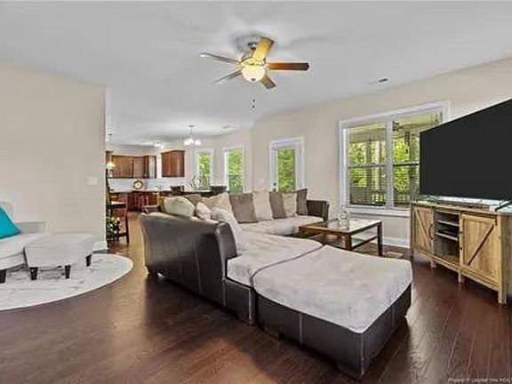 Welcome to this stunning 4-bedroom, 2.5-bathroom home located in the desirable gated community of Anderson Creek Crossing. As you approach the house, you'll be greeted by a charming covered front porch, perfect for enjoying your morning coffee or relaxing in the evening. Step inside to the foyer with beautiful laminate flooring that runs through the downstairs. Be captivated by the elegant Formal Dining Room with trey ceilings, providing a sophisticated space for entertaining guests or enjoying family meals. The modern kitchen boasts stainless steel appliances, including a gas range, fridge, dishwasher and microwave/convection oven, making cooking and cleaning up a joy. The kitchen also showcases beautiful granite countertops, a pantry, and an island, providing both functionality and style. The spacious Great Room features a cozy gas log fireplace, creating a warm and inviting atmosphere for gatherings or simply unwinding after a long day. All bedrooms are located upstairs and include plush carpeting. The large Primary Suite is a peaceful retreat with its luxurious garden tub and the separate shower stall allowing you to unwind and recharge. The convenience of a washer & dryer (NOT WARRANTED) in the upstairs laundry room ensures that laundry day is a breeze. With large closets throughout, you'll have ample storage space for all your belongings. Additional features of this remarkable home include a two zone heat pump for heating & central A/C, a walk-in crawl space/storage, ensuring plenty of room for all your storage needs, a serene wooded property line, and a screened-in back porch, perfect for enjoying the outdoors while staying protected from the elements.