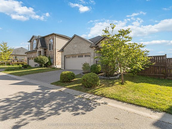 Welcome to one of North London's most desirable communities! This stunning home blends comfort, style, and thoughtful upgrades in every corner, offering plenty of space for both everyday living and entertaining. The main floor features a bright open-concept design with a cozy gas fireplace and a custom kitchen complete with quartz countertops, backsplash, custom cabinetry, stainless steel appliances, and an under-mount sink. From the dining area, step out to your private composite deck, fitted with a custom awning and overlooking quiet green space-perfect for morning coffee or evenings with friends. Upstairs, the primary suite is a true retreat with a tray ceiling, a large walk-in closet, and a spa-like 5-piece ensuite featuring a soaker tub and a glass-enclosed shower with custom tile. The fully finished lower level expands your living space with a spacious great room featuring a custom accent wall, a third bedroom, bathroom, laundry, and abundant storage. A dedicated fitness area and a generous recreation room provide endless flexibility, making it ideal for guests, hobbies, or family fun. Recent updates include professional paint throughout, hand-scraped hardwood and luxury flooring on both levels, upgraded easy-close cabinetry, intricate tile work, and professional landscaping. An oversized double garage with inside entry and a fenced yard add convenience and curb appeal. Ideally located just steps from excellent schools, parks, trails, and shopping, this home combines elegance, functionality, and a low-maintenance lifestyle in one of London's premier neighborhoods. Whether you're hosting a dinner party, relaxing in your backyard oasis, or exploring nearby amenities, this property truly has it all and is move-in ready for its next owner. Don't miss the chance to call this gorgeous home your own schedule your showing today!