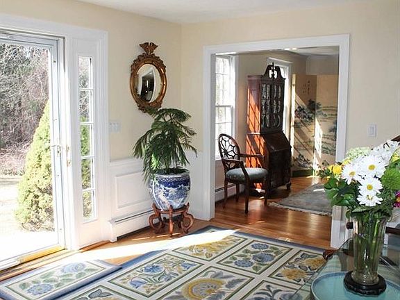 Beautiful 9 rm Colonial with 4 bedrooms and 2.5 baths located on neighborhood street one mile from Carlisle Center. Set back from the road, nature surrounds you in this private 2 acre oasis. Meticulously maintained, you will delight in the many architectural details. A classic brick walkway leads to a stately foyer opening to a smartly designed kitchen boasting granite, newer appliances including wall oven and cooktop, center island as well as a spacious walk-in pantry with laundry. A cathedral ceiling family rm off kitchen with cozy fireplace and built-in bookcases opens to a 3 season porch overlooking a lovely landscaped yard. Formal dining and front-to-back living room with fireplace, office, and a modern half bath complete the first floor. Upstairs, 4 generously sized bedrooms await along with 2 nicely updated full bathrooms. Finished space in basement offers a playroom, exercise area, plenty of storage, plus access to a 2 car garage under. Highly ranked schools. Move right in!