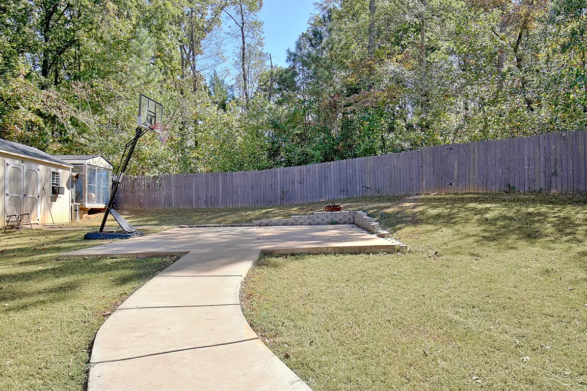 Cement basketball courtPrivacy fenceScreened in back patioPrivate furry family kennel