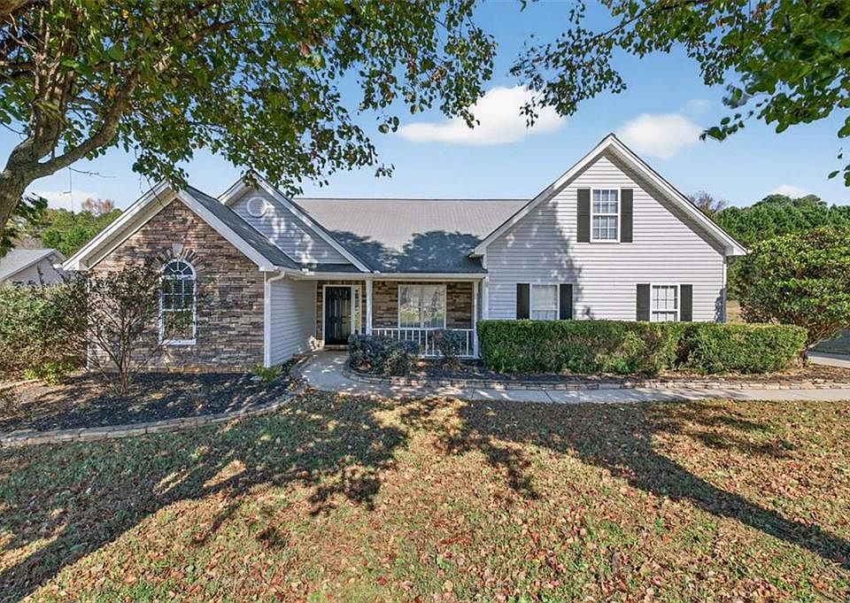 This charming 4 bedroom / 2 bathroom home is located in the Dillons Walk neighborhood just off Hwy 124 in Jefferson. It sits on a mostly level .99+/- acre lot and has a fenced backyard with newer privacy fencing. Walking up to the home, you will love the shaded rocking chair front porch. Inside, this home features a split floorplan with 3 bedrooms on the main floor and the 4th bedroom upstairs. The primary bedroom is located on the opposite side of the home from the secondary bedrooms. The primary bedroom has a large trey ceiling and a large walk-in closet. The primary bathroom is open, spacious, and offers TONS of counter space, plus a large soaker tub and separate shower. In the kitchen, you have stainless appliances, granite countertops accented by a subway tile backsplash, and a breakfast bar overlooking the living room which includes a wood burning fireplace. Interior has been recently painted, and all main level carpet was just replaced. This amazing small neighborhood has great neighbors with NO HOA! With great schools, grocery stores, and restaurants less than 10 minutes away, you will fall in love with this home.