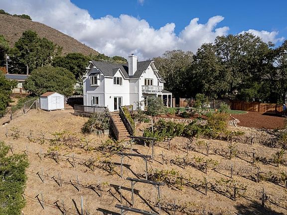 Charming 3 bedroom, 1.5 bath farmhouse set on approximately 3/4 of an acre with a small vineyard located in sunny Carmel Valley, just past the Village. This home is cute as can be and is loaded with country charm! With its southern exposure, this cottage gets plenty of natural light. The main level contains a living room with a wood stove, an eat-in kitchen with a new sink and countertops and room for a dining room table, plus a bedroom with a half bath. The second level offers high pitched exposed wood ceilings, and floors covered in wood planks, adding to the country farmhouse feel. It features two additional bedrooms with a full bath and a large bonus room in between with a small deck. The land offers privacy and tranquil views of the beautiful Carmel Valley and features an organic vineyard planted approximately 30 years ago with Cabernet Sauvignon and Chardonnay grapes with great local lineage. There are several sheds for storage, a new 50-year roof, lots of fresh paint, a new fence and updated landscaping. Ideally located just a few minutes from the "The Village" and about 12 miles from downtown Carmel-by-the-Sea, you'll want to make sure you come see this little country gem!