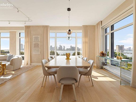 Enter through a gracious Foyer that flows into a hallway leading to a 34 foot Great Room with breathtaking, unobstructed views over the Hudson River. This expansive room, featuring wall-to-wall west and north-facing windows, is ideal for entertaining with separate Living and formal Dining Areas. Your guests will enjoy unparalleled sunsets. Custom-designed steel and glass sliding doors take you to the home's windowed, eat-in Chef's Kitchen. This fully integrated room is outfitted with hand-milled oak paneling, Bardiglio Luco marble countertops, top-of-the-line Miele appliances including two dishwashers, a dual fuel range with pot-filler, combi-steam oven, built-in convection wall oven and coffee bar, SubZero wine storage and abundant storage space throughout.