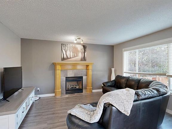 Double attached garageDecorative frosted glass doorOversized windowOpen concept main levelSpacious great roomLuxury vinyl plank floorsTile-surround fireplace