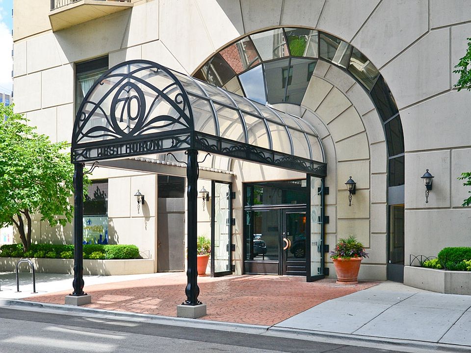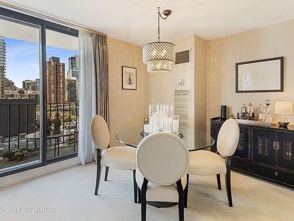 Beautiful, sun filled & spacious northwest corner condo in River North. Floor to ceiling windows with custom drapes and blinds. Generous closet space with Elfa organizer systems. Hardwood floors in entry hall and kitchen. Separate living & dining areas with North-facing balcony. White kitchen with natural stone counter tops and stainless steel appliances. Storage locker included in price. Rental parking is available in building. Fitness center, bike rooms large outdoor deck, 24 hour door staff, and large laundry facility. 1 block to Whole Foods, close to coffee shops, restaurants, Michigan Ave and more.