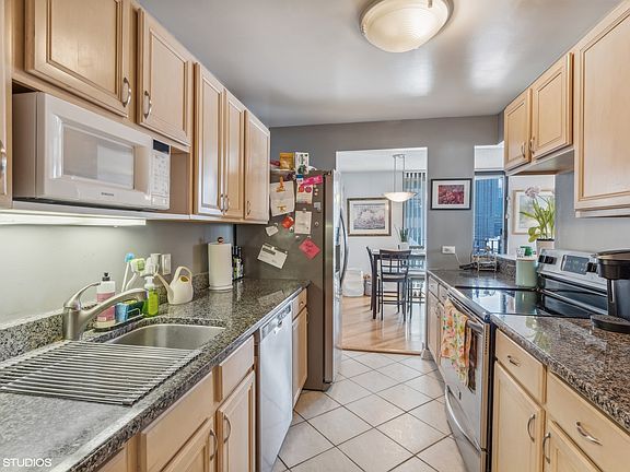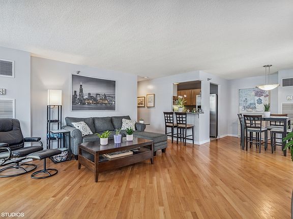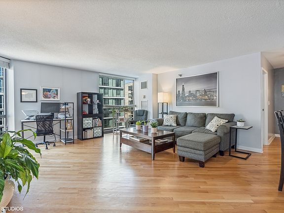Welcome to this stunning Southwest corner one-bedroom unit in the heart of River North! Enjoy breathtaking views of downtown from the large balcony of this gorgeous home. The unit features high-end finishes, including granite countertops and stainless steel appliances in the kitchen, adding a touch of luxury to your daily routine. Many living room and bedroom windows ensure plenty of natural light, while custom 2" blinds provide privacy and shade when needed. Prime first-floor garage parking space is available for an additional $35k. This full amenity building offers a concierge, sundeck, gym, sauna, and party room, providing everything you need for a comfortable and convenient lifestyle. Conveniently located just steps away from Whole Foods, CTA, shopping, and some of the best restaurants in town, this is the perfect home for those who want to experience the best River North living. Don't miss your chance to make this amazing home your own!