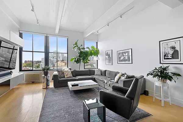 **Shown By Private Appointment Only** VIEW FROM THE TOP ~ Dazzingly Sunny with Coveted Views! This high-floor, sprawling condo is nestled away in highly coveted DUMBO -- among cobblestone streets and waterfront parks. This spacious home offers a modern industrial aesthetic with over 1,300 square feet of uniquely luxurious living space - with soaring 11 foot ceilings and vastly oversized windows that absolutely flood the space with natural sunlight. Speaking of windows: all of the windows throughout the unit are CitiQuiet soundproof windows - maximizing tranquility throughout the entire space. Enter the apartment via a long entry foyer offering the type of storage New Yorkers dream about: a long hallway entirely comprised of unrivaled floor-to-ceiling closet space and in-unit laundry. The stylish living area boasts enviable views, plenty of room for a large dining table and an open concept kitchen that includes a center island (with overhang for stool seating), high-end stainless steel appliances and abundant cabinet and drawer storage. The primary bedroom boasts even more oversized windows , deep dual closets and en-suite bathroom with double vanity, deep soaking tub, separate glass-enclosed shower and abundant storage space. A second room is the perfect set-up for a home office or nursery - with its own private full bathroom. This apartment also offers: central air conditioning, hardwood floors and custom built-ins. Enjoy the amenities and convenience of life at 70 Washington Street: gorgeous shared roof deck, 24-hour doorman/concierge and freshly updated & fully-equipped gym. Subways: F at York Street & A/C at High Street. Pet friendly and investor friendly. Please contact the exclusive agent from the Corcoran Group with questions or to set up a showing.