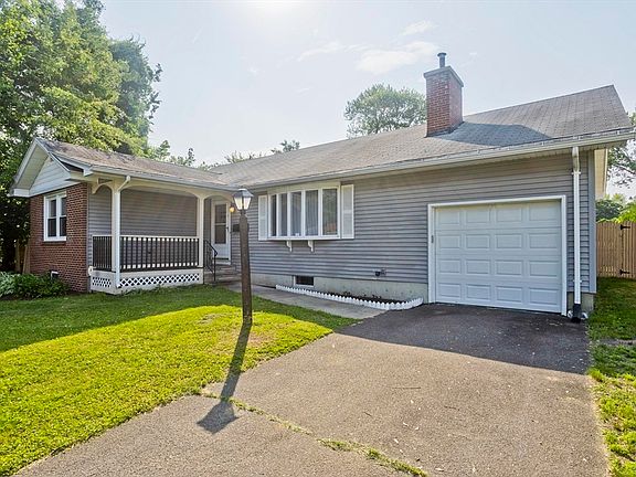 Welcome to this delightful vinyl-sided RANCH featuring 3 bedrooms & 1 bath in a convenient Chicopee neighborhood. Inside, you'll find beautiful wood floors throughout the living room & all bedrooms. The inviting living room showcases a large bow window that fills the space w/natural light & a cozy fireplace flanked by built-in shelving—perfect for displaying your treasures. The spacious eat-in kitchen includes a center granite topped island ideal for casual meals &/or food prep. Step into the 3-season sunroom, which opens to a wood deck—creating a perfect setting for relaxing. Out back, the fenced in, flat yard features a fire pit, shed & patio - ideal for pets, play, or gatherings. Additional features include a one-car garage with interior access & a full, partially framed basement ready for expansion (rooms & bath) and your personal touch. 2016 Crown boiler just cleaned! A fantastic opportunity in a desirable location—don’t miss it! Some rooms virtually staged. NOT FOR RENT