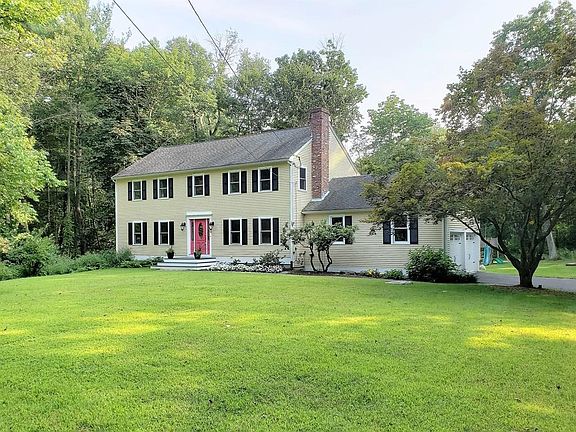 Priced to sell! If you're looking for a charming, light filled colonial, look no further. Sited on a scenic country road, this cheerful 4 br home has been meticulously updated, room by room and reflects an easygoing life style with many options. A new entry porch leads to a fabulous family room accented by lighted, custom built entertainment center with flat screen TV (included), ample storage and bookshelves making it a perfect spot for curling up with a book, watching your favorite shows or entertaining friends.Cheery eat-in painted kitchen has loads of work space, peninsula, pantry, tile floor and granite counters.Great floor plan includes comfortable dining room and living rm. Enter through the 2 car garage into a well thought out mud room with tons of storage space. 2nd floor has Master bedroom suite with bath, spacious hallway, laundry and 3 additional Br's. Finished walk-out basement & delightful screen porch to back yard. NEW paved drive & new neutral dining rm & MBR paint.