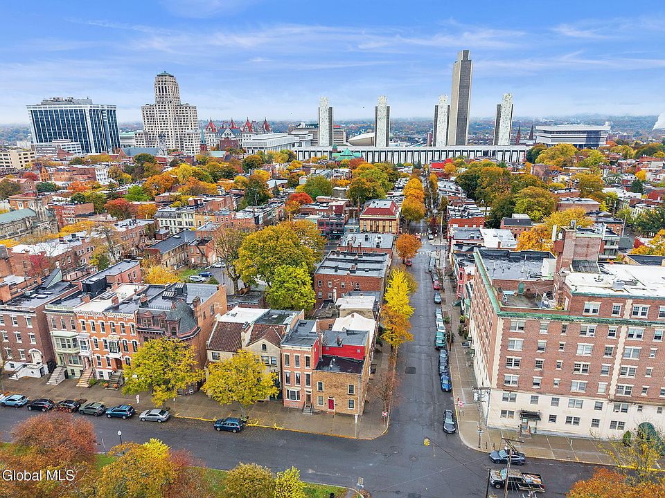 Own an entire corner of Center Square overlooking iconic Washington Park! This rare Albany offering features 6 doors across 3 buildings, all tied together by a shared basement and conveyed as one exceptional property. For owner-occupants, the vacant 4-bed, 3.5-bath brownstone is turn-key and ready for you to call home. Live in one of Albany's most beloved neighborhoods while enjoying instant income from the 5 fully rented 1-bed/1-bath apartments. Let your tenants offset your mortgage while you enjoy proximity to downtown, Lark Street, Albany Law, Albany Med, shops, parks, cafés, & restaurants. For investors, the numbers speak for themselves: projected long-term rental income of $85,600 annually with potential to increase. Or take advantage of Albany's strong demand for short-term rentals—this brownstone previously operated as a bed & breakfast and is ideally suited for Airbnb or furnished executive rental use. Whether you're seeking an exceptional owner-occupied residence, a cash-flowing portfolio addition, or a unique hybrid investment, this prime corner of Washington Park delivers unmatched versatility and character. One address, one tax bill, endless opportunity in the heart of Albany. Valid ROP's through 4/29/27. Proforma & Rent Roll in MLS documents. Limited showing schedule & 24 hour notice required. Agent related to seller.