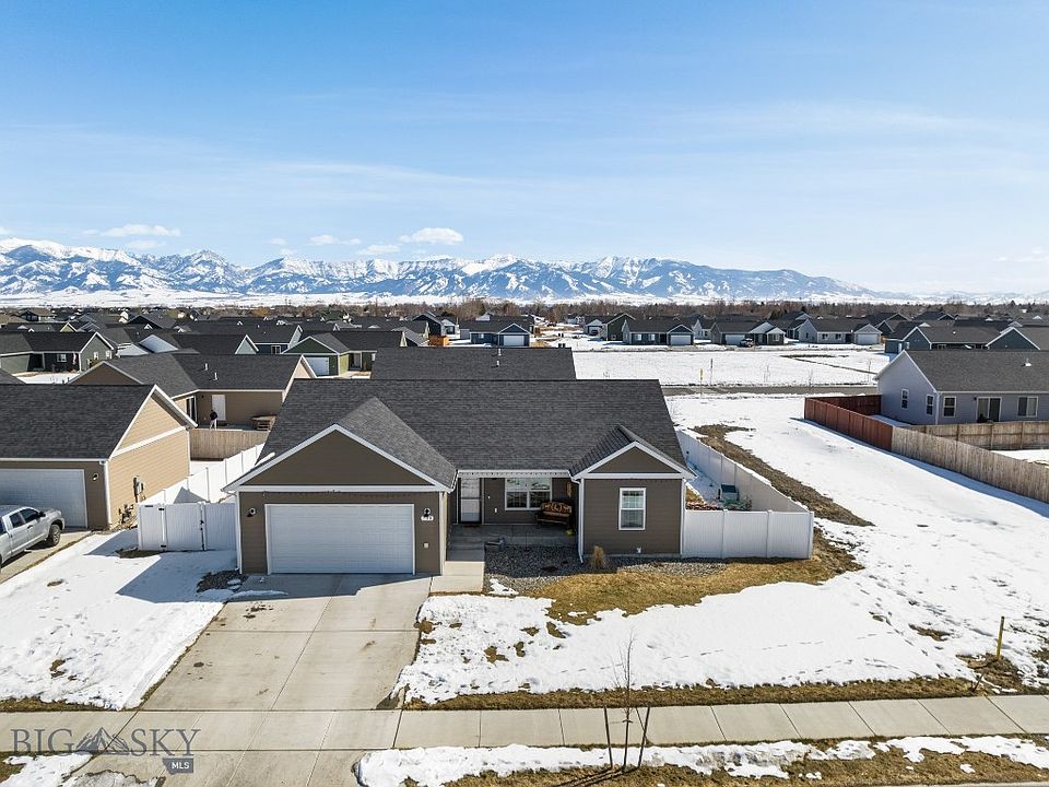 Come enjoy this quality built, newer home in Bridger Heights subdivision in Belgrade Montana! Built in 2020, this home features 3 bedrooms & 2 bathrooms, 1,437 square feet and all on one level! The master bedroom is more than spacious, including a dual-sink vanity and walk-in closet! Plush carpeting and luxury vinyl plank flooring can be found throughout the home, and it boasts an open floorplan concept between the living room, dining area and kitchen. The kitchen is completed with stainless steel Whirlpool appliances, custom cabinetry, and a pantry for storage. Leading out the dining area to a sliding glass door is the beautifully landscaped backyard and is a perfect place to entertain family and friends! Enjoy the mountain views under the new pergola and harvest your vegetables from the built in garden boxes all surrounded by a low maintenance, high end, white vinyl fence. This home has it all, including a built-in radon mitigation system and is totally turn-key for any buyer! Call today for a showing!