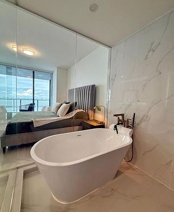 Brand-new 2025 residence. fully furnished and equipped, featuring 3 bedrooms, 3.5 bathrooms den with 1750 sqft of interiors and 229sqft terrace with direct water views. Move in ready with access to over two acres of resort-style amenities including three swimming pools, fitness center, spa, children's play are, wine lounge, library, event room , lap pool, tennis and paddle courts, basketball and mini golf. Excellent location just 15minutes from Miami International airport and close to Design District, Midtown, Brickell.)