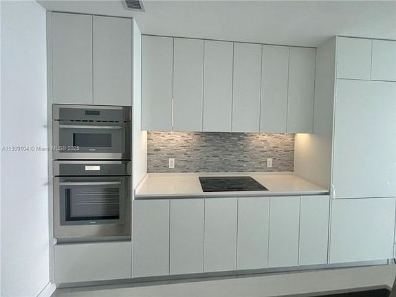 Floor-to-ceiling glassQuartz countertopsEuropean cabinetryGourmet kitchenDesigner lighted mirrorsUnobstructed viewsModern kitchen backsplash