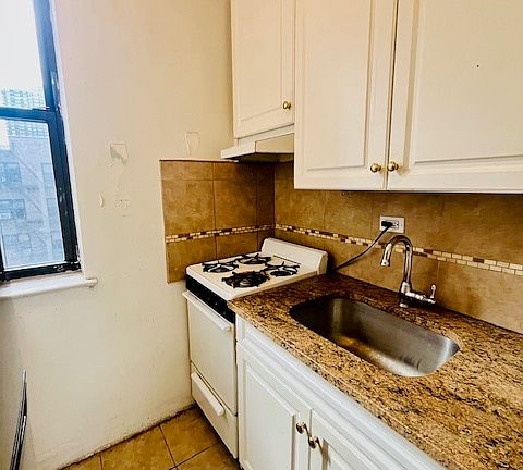 Studio apartment on the 4th floor entrance foyer has two closets, separate eat in kitchen with new stove and window, bathroom has tub/shower vanity & window. Hardwood floors throughout and large bright living and bedroom space. NO PETS ALLOWED.