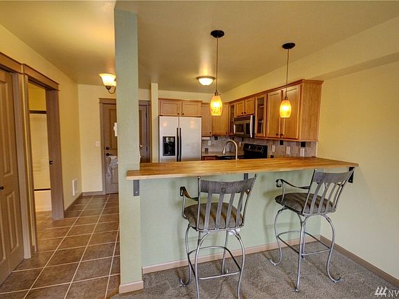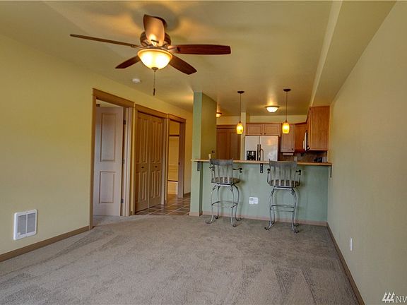 Extremely well-maintained condo! Features include new carpet & window treatments, freshly painted, closet organizers, ceiling fans, private deck & new washer/dryer. Efficient kitchen w/ new faucet & garbage disposal, refurbished tile floor, new light fixture & upgraded breakfast bar for pleasant eating space. Storage unit included on same floor. Secure building w/ assigned parking, elevator, fitness center & covered bike rack gazebo. Great location close to WWU, Sehome Village & WTA bus stop.