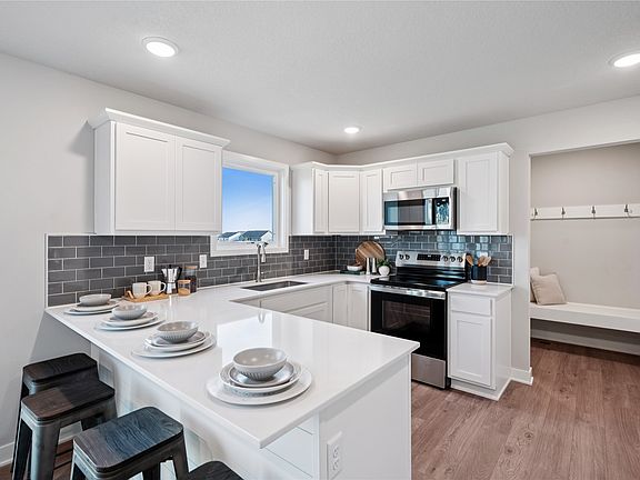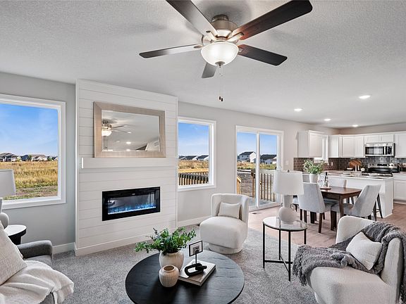 This Greenland Homes Reagan two-story plan offers 1500 sq. ft. of well-designed living space, including a dedicated office ideal for remote work setups. The open main level, adorned with our stylish Millennial package, welcomes ample natural light and boasts an eat-in kitchen with quartz countertops, painted cabinets, backsplash, and stainless-steel appliances. Additional features include a convenient powder bath, drop zone, and an electric fireplace with a shiplap surround. The open dining and great room area seamlessly flow to the rear deck, creating a perfect space for entertaining. Upstairs, the home features three generously sized bedrooms, two full baths, and a laundry area bathed in natural light. The primary bedroom features a walk-in closet, enhancing the home's practicality and comfort. With a 3-CAR garage, low-maintenance vinyl siding, and a 2-year builder warranty. Don't forget to ask about financing promotions with the preferred lender.