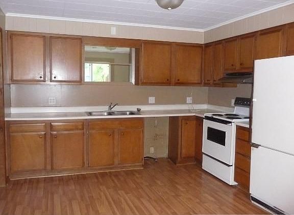 Spacious open Kitchen with new laminate floor in this affordable 3 bedroom 1 bath home all on main with Central Air. Roomy lot on quiet SE street and attached single garage.