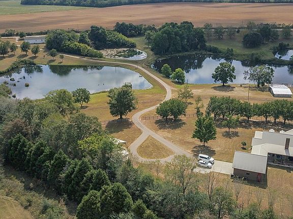 Unique Find! Southern Charm on 33 Rolling Acres with 10 Acres of stocked fish ponds fed by Good-Water Springs. Home offers open floor plan w large kitchen bar, breakfast area, and separate dining. Family room with cathedral beamed ceilings and custom fireplace. Custom woodwork in every room. Separate Guest Cabin with kitchen, overlooking dock and pond. Gunite Pool w diving board and slide. 30'x100' insulated storage building with loft. Tractor/Tool Barn. 5 Apartments @ Rd with Income Potential.