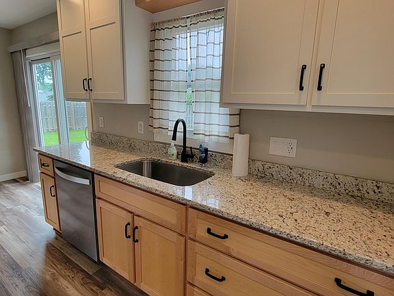 This home is clean and neat and move in ready! 3 Bedroom home with many updates. A list of updates includes but is not limited to the following and approximate dates of improvements: completely updated kitchen with new designer cabinets, granite countertops, all kitchen appliances 2023. Kitchen and MF bath flooring in 2025. Patio door, side entry door, interior doors, roof and siding in 2023. Main level bathroom in 2021. Sump pump new May 2025, water softener new 2023. The windows, furnace, JT waterproofed basement, egress window in basement approx 2003. Original wood floors in several rooms are finished, shiny and beautiful. Backyard leveled, new grass, and new concrete patio all finished in 2025. New front and rear steps 2025. Street is widened with new curb, gutter and sidewalks 2024. Landscaping 2025. Portions of fencing 2024.