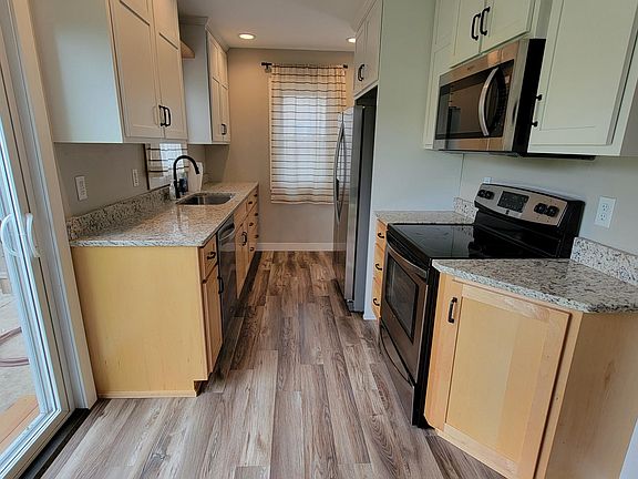 This home is clean and neat and move in ready! 3 Bedroom home with many updates. A list of updates includes but is not limited to the following and approximate dates of improvements: completely updated kitchen with new designer cabinets, granite countertops, all kitchen appliances 2023. Kitchen and MF bath flooring in 2025. Patio door, side entry door, interior doors, roof and siding in 2023. Main level bathroom in 2021. Sump pump new May 2025, water softener new 2023. The windows, furnace, JT waterproofed basement, egress window in basement approx 2003. Original wood floors in several rooms are finished, shiny and beautiful. Backyard leveled, new grass, and new concrete patio all finished in 2025. New front and rear steps 2025. Street is widened with new curb, gutter and sidewalks 2024. Landscaping 2025. Portions of fencing 2024.