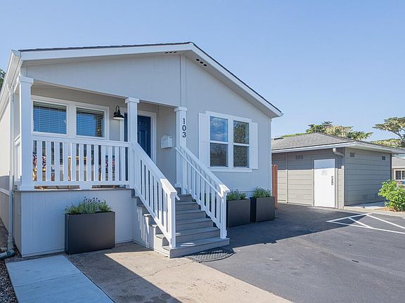 What could be better than living across the street from the picturesque Lover's Point Beach and Park and popular water-view restaurants like the Beach House? Living in your very own newer "Beach Cottage" that just underwent a complete makeover. From new wide plank flooring throughout, to new Quartz countertops in the kitchen and bathrooms, to new appliances, to new sinks and faucets, to new paint inside and out, to new fencing - all done by local professionals. The skylight tubes and vaulted ceilings create a spacious and light-filled space with an open and inviting floor plan. A peek of the water can be enjoyed from the dining room. The Monarch Pines 55+ community offers both planned and unplanned activities. The community includes a clubhouse with a roof top deck with spectacular ocean views, kitchen facilities, mgmt. office, library, rec room, putting green/bocce ball court, and an organic garden. The HOA fee covers garbage and sewer and common area. This is a stock cooperative park which means you own your unit and a voting share in the HOA that owns the land. There is no space rent but there is a monthly HOA fee. Enjoy life in this community by the sea - a wonderful place to call home!