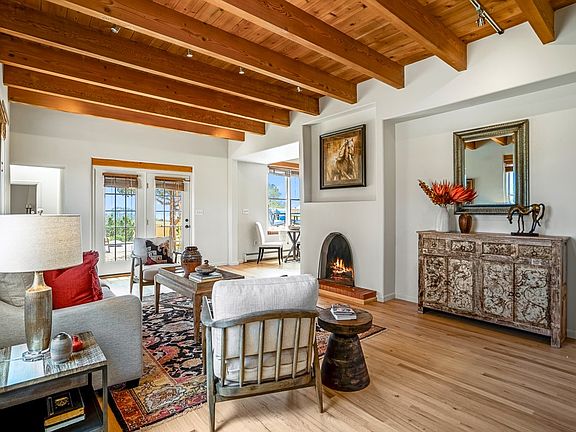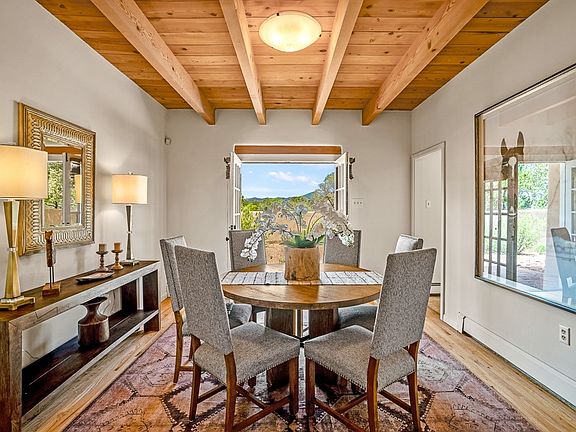 The charming 3-bedroom, 2-bath home offers an unparalleled blend of comfort, location, and mountain views. Boasting an updated kitchen, the residence has an open plan living and dining room that opens out to spacious patios and decks on three sides.  Relaxing on the patios or portals, you can enjoy majestic vistas of three mountain ranges, showcasing Santa Fe's stunning natural landscape for year-round, four season, outdoor living. The two-car garage adds extra versatility. With its ideal position on Museum Hill adjacent to the Wheelwright Museum, cultural landmarks and scenic beauty are just moments away. Come see this unique property today.