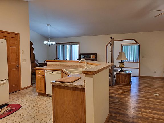 EASY ONE LEVEL LIVING! You'll love this rare find spacious 3bedroom, 2 bath, one level town home. Great edge-of-town location with a quiet neighborhood feel, near the golf course & downtown conveniences. Updated furnace, AC, water heater & beautiful engineered hardwood flooring. Relaxing patio overlooking a peaceful woodland, four season sunroom, large pantry, cozy gas fireplace, insulated/heated finished garage with tons of built-in's for storage & a handy laundry/mudroom located just off the garage entrance. Awesome open concept with the convenience of everything on one level. No grass or snow worries, just move in and relax!