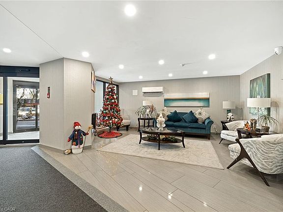 Welcome to The Empress, a well-managed condominium with 24 hour concierge, steps from Burlington Centre, Farm Boy, Denningers, public transit, parks, and quick highway access. This beautifully renovated 1+Den, 1.5 bath suite offers outstanding value and exceptional livability. The unit features newer flooring throughout, upgraded lighting, and a luxurious main bathroom. The sleek, renovated kitchen includes a custom built-in pantry, modern finishes, island and thoughtful storage solutions that maximize every inch. The spacious living room offers a comfortable layout with a walkout to the private balcony, while the separate den is ideal for an office or quiet reading space. The dining area easily accommodates a full-sized dining table, making entertaining effortless. The primary bedroom includes a rare walk-in closet and convenient two-piece ensuite. Additional features include a full laundry room, PAX wardrobe system in the front hall closet, and custom built-in storage throughout the suite creating a highly functional and organized home. The Empress provides excellent amenities, including a renovated party room & gym, outdoor pool, and underground parking. Beautifully updated, move-in ready, and located in one of Burlington’s most convenient neighbourhoods—this condo is a must-see.