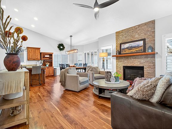 Welcome to this beautifully maintained Ivory Home with a huge 20x20 covered patio that brings indoor and outdoor living to this perfect home in a desirable 55+ maintained community. Look at these beautiful custom hardwood floors!!! This home features elegant alder cabinetry, designer two-tone paint, and granite and Corian countertops. Tiled bathrooms. The range has a double oven with plenty of space to entertain family. The gas fire place is beautiful and adds the cozy effect on those brisk nights. Enjoy spacious 9-foot basement walls, detailed Alta base and case trim, and stunning finishes throughout. The Craft Room in the basement is very spacious and suited for your projects. And the cold storage room is large with awesome shelving. Main Floor Windows were replaced with top of the line windows 1 year ago and have beautiful 5 inch plantation shutters. The HVAC system was redone with top of the line HEAT Pump/AC recently. The community offers fantastic amenities and a peaceful setting-perfect for comfortable, low-maintenance living. Don't miss your chance to see this home in person-it's a must-see! HOA Features Tennis/Pickleball QT. Landscaping and maintenance, Christmas Lights, Snow Removal, Sprinklers and Watering service all made to make this home almost maintenance free.