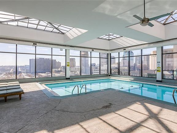 This beautifully updated, larger 2 bedroom, 2 bath home is inside the centrally located Manhattan Condo's. The Manhattan offers the ultimate in downtown Kansas City living. Located in the heart of it all ~ steps from the City Market, KC Streetcar, Power & Light District, Crossroads Art District & CPKC Stadium. Resort style amenities include on the penthouse floor an indoor pool with glass ceiling for year round use, brand new sauna, & bar area available for residents use and can be reserved for private functions. The street level includes an on-site coffee shop, mailboxes, concierge 24/7 & security. The first floor (requires key fob access to go down in elevator) includes garage access, state of the art gym, conference room, and tanning bed. Dog park which includes poop bags, is fenced and lit up can be found through garage access. The second floor includes laundry room, ATM, water filtration station, movie theater, game room, workshop & access to this units secured storage unit. HOA covers all of the amenities, secured building and garage as well as all utilities except for Google Fiber or Cable. Cat, dogs & bunnies are allowed, but 2 pet limit with no weight requirements (see HOA documents for all details). Also, there is a 50% tax abatement until 2030!!