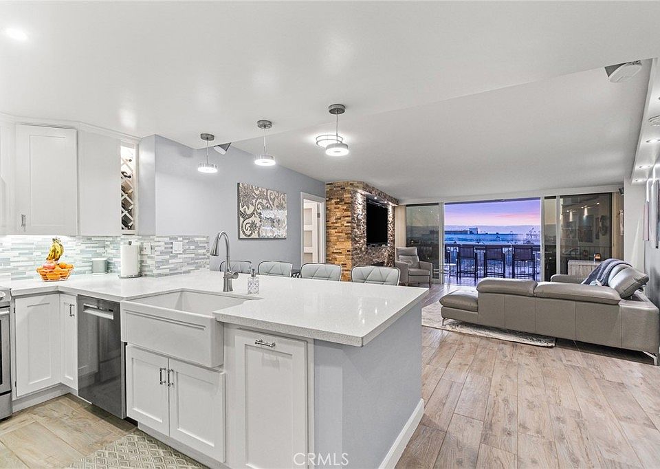 Beautifully remodeled in 2020, the interior showcases porcelain tile flooring throughout, custom marble-tiled bathrooms with Kohler fixtures and bidet-equipped toilets, upgraded stainless steel appliances, full-size stackable laundry, smart-home lighting with energy-efficient LED fixtures, and an enhanced water heater designed for modern living.