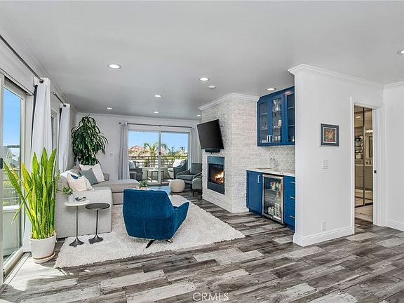 Leave your flip flops at the door, your new home is too tranquil to bring the sand in from the beach below. The location of a west-facing, end unit with upgrades to the floorplan and finishes you’ve dreamed of having in your completely remodeled home are finally here. Walk into the open-concept kitchen-dining-living room where everyone is together and in flow. The cook of the house won’t mind the 5-burner range or the expansive countertop and cabinetry storage space with great utility for preparing meals. Light flows in from all angles with surprising privacy through the three sets of new sliding doors, windows abound, three fireplaces and with the upgraded recessed lighting. The dining banquette is brilliant, seating up to 8 (or more!) but consuming minimal space with the built-in three-sided bench. Who doesn’t love sitting on a fabulously upholstered bench and the intimacy it brings to every meal! Sunsets and coffee will become a ritual to be enjoyed, lingering on either of the two ocean view balconies with the best possible light coastal SoCal nature offers; south and west facing. The primary suite also has a peek-a-boo ocean view with ample room for a king bed, a fireplace, dual vanity remodeled bathroom with wrap-around closets, enclosed water closet and shower. The second bed and bath are spacious and attractively remodeled with ample privacy between the two bedrooms. Closet organizers, laundry in-unit and the wet bar in the living room are examples of the upgrades that go on and on. All remodels are not created equal and combined with this extraordinary oceanside, Esplanade “A” location, this is the one you don’t want to let get away.