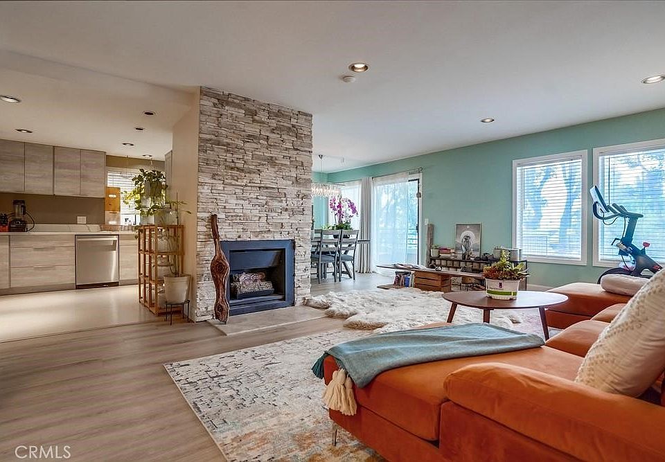 Welcome to Redondo Beach! This is your opportunity to live just steps away from the Pacific Ocean! Baypoint Association Condominiums at Esplanade is within walking distance of the Riviera Village with countless restaurants and shops just minutes away. The open floor plan of the living and dining area flows nicely into the updated kitchen. The kitchen is complete with its modern cabinetry, sleek countertops, and newer appliances. There hookups and hidden space for a washer and dryer in unit for your convenience. The upscale living room offers smooth ceilings, recessed lighting, new flooring, an updated rock gas fireplace, dual paned windows throughout, a sliding door off the dining room leads to spacious outdoor patio for entertainment. This beautiful residence offers two bedrooms and two updated bathrooms. The spacious primary bedroom includes a full bathroom en-suite with access to the outdoor patio. Easy access to everything the neighborhood has to offer, including the highly rated Alta Vista Elementary School and of course you are just steps away from Beach. Bike ride down the Esplanade path to Hermosa and Manhattan beach both within a few minutes. Baypoint amenities include controlled entrance, gym fitness room, meeting Room, and gated parking for two vehicles. All furniture, washer, and dryer can be negotiated. Agent is owner.