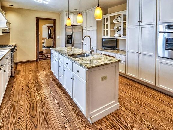 Stone Landmark! Major Kitchen, Master Bedroom Addition. MBR with deck overlooking the wooded lot, fireplace, dressing room, amazing master bath. Wooded cathedral ceilings in LR, DR & MBR. 40x25 fishpond with waterfall adjacent to summer house with stone woodturning fireplace. New Kitchen, Breakfast Room, new granite countertops, (2 DW's, Thermidor Dual Fuel Range and separate convection wall oven) center island with prep sink w/ disposal. stone patio & mature trees. 2 zone HVAC - new in 1999. Newer thermal true divided lite windows. Heated Garage. Master Bath with floor to ceiling tile, 5x5 all tile shower with fixed and handheld shower heads and built in marble shelves & seat. 2 marble topped sinks and vanity, skylight with accent lighting, large linen closet, oversized cabinet.