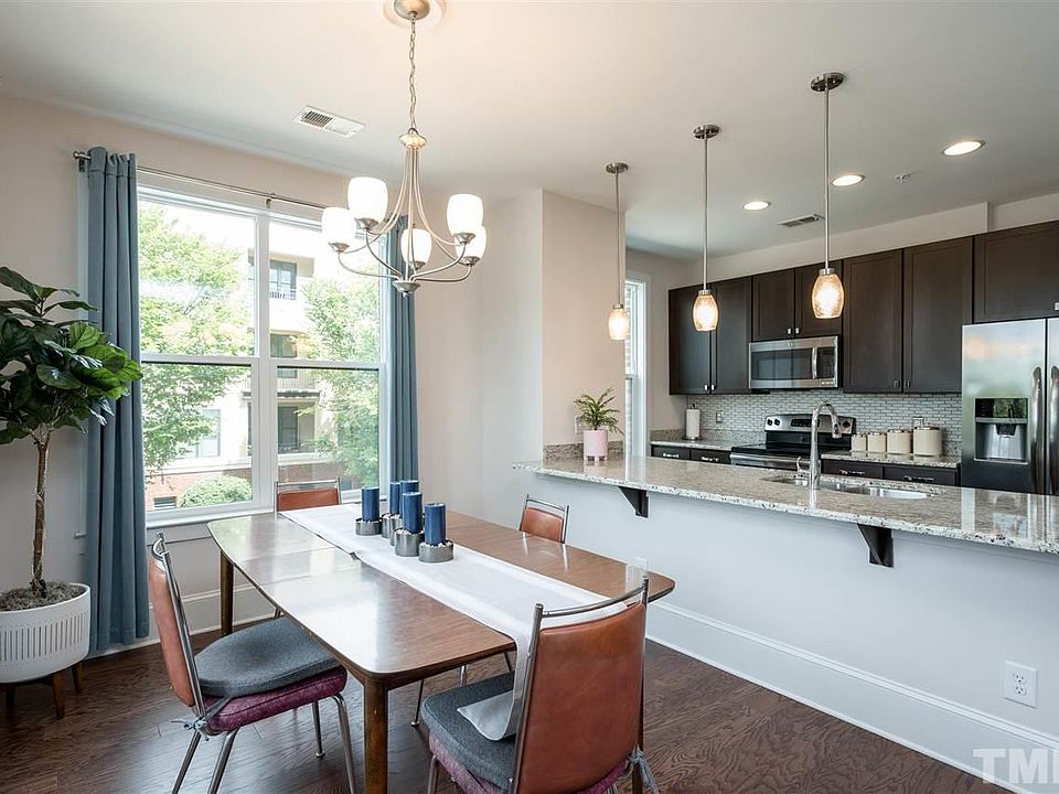 Well maintained, end unit condo feels like home as soon as you step onto the hardwood flooring. 2nd floor, single level living, features an open floor plan that allows you to catch a game while entertaining guests in the kitchen, DR and LR. Many windows for natural lighting make this home feel open/airy. Carpeted owner's suite exudes a soft, quiet feeling and a covered back porch offers breezy relaxation. Trendy, secure living, close to shopping, restaurants offer metropolitan luxury at attractive price