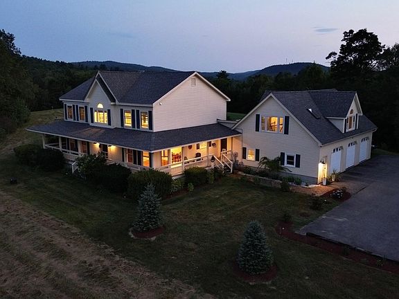 SOLD before listing in the MLS. Nestled in the heart of the countryside, the executive home stands as a testament to luxury and tranquility. This 3BD/4BA home features vaulted ceilings creating an open and expansive atmosphere, while a double-sided fireplace casts a warm glow throughout the open-concept living space. It features custom office space, dining room area, open kitchen, and a large bouns/entertainment room. Sunlight streams through the windows, offering breathtaking views of the surrounding landscape from every room. Outside, a wraparound porch offers expansive views to relax and soak in the beauty of the natural surroundings. A large back deck is great for entertaining or watching the abundant wildlife. Rolling open pastures and a farm-style barn added a touch of rustic elegance and an opportunity for barnyard animals. With 53+ acres this mix of pasture and wooded areas creates a diverse ecosystem, complete with a serene pond, towering maple trees, historic stone walls, and a babbling stream. Equipped with modern amenities such as a 3-car garage, on-demand generator, mini-splits, and solar panels, this home offers both convenience, efficiency, and sustainability. The property is a haven for wildlife enthusiasts, simply, an escape where one can truly connect with the beauty of the natural world. Close to shopping, schools, ski areas, highways, and restaurants.