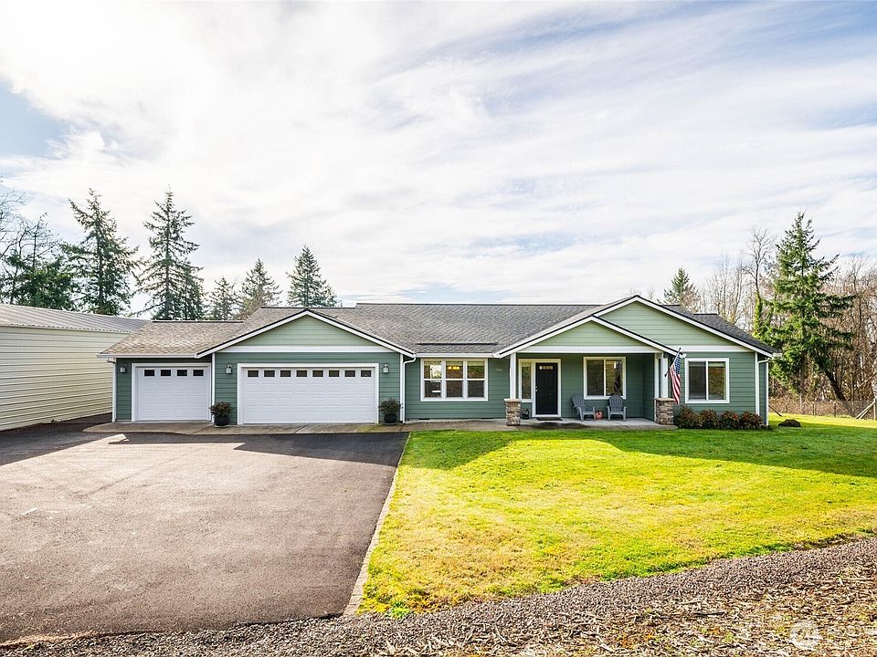 Discover this beautifully maintained single-story home on ~2.67 acres overlooking the Columbia River in the lovely community of Kalama! Step inside to find high ceilings, a spacious dining room and kitchen with granite countertops, stainless appliances, and a corner pantry—perfect for entertaining or comfortable everyday living. Pride of ownership shines throughout with thoughtful finishes, manicured landscaping, and a warm, inviting feel. The home offers a finished 3-car garage with built-in cabinets and custom workshop space, plus an impressive 25x50 detached metal shop with pavement under providing ample space for your boat, tractor, RV, or toys! Outside you'll enjoy loads of paved parking, a stone-accented covered porch entry, a fenced yard, and a covered back deck ideal for relaxing while taking in the view. The property also includes a charming old homestead structure—currently used for storage—with a rustic sauna inside, and three driveway approaches for convenient access. With city water and septic, PLUS a private well for irrigation, this home blends comfort and practicality. A 50-year roof adds peace of mind, and the location offers the perfect balance of privacy and convenience—just minutes from town and freeway access. A rare find combining space, views, and a one-level layout that you don't want to miss!