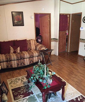 Neat, Clean manufactured home with double carport, concrete driveway with large workshop in fenced, private backyard.