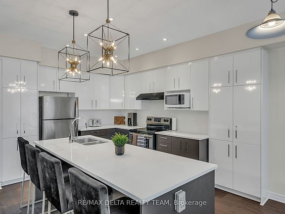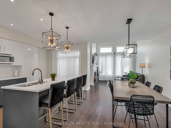 Welcome to this beautifully maintained and FULLY FURNISHED 3-bedroom, 3-bathroom townhome in one of Ottawa's most sought-after neighbourhoods! The main level features hardwood flooring, an impressive 12' vaulted ceiling in the living room (with 9' ceilings throughout the rest of the floor), and a cozy gas fireplace. The chef-inspired kitchen includes an extended island, quartz countertops, and plenty of cabinet space. Large windows fill the home with natural light, and a convenient powder room completes the main floor. Upstairs you'll find a spacious primary bedroom with a 4-piece ensuite and walk-in closet, along with laundry on the second floor for added convenience, plus two additional bedrooms and a full bathroom. Fully finished basement with a generous recreation area. No pets. Please provide Full Credit Report, Proof of income, Employment Letter, Rental Application, and I.D. with all applications.