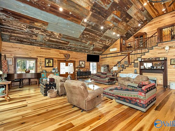 This like new custom 3BR/4BA 3997sf Barndominium has too many extras to list! Each bedroom has its own bath! On the main floor, the expansive living room and kitchen have vaulted ceilings and would be perfect for entertaining or family gatherings. The kitchen has custom walnut counters and a large walk-in pantry. The master bedroom and bath are a true luxury, with a soaking tub, two shower heads in a custom tile shower, and double vanities. There are two additional bedrooms and baths upstairs that also have custom tile showers and one has another soaking tub! Moving outside, the home has metal siding and roof with rock foundation & trim. There is a screened porch, gated pool, and carport.