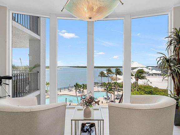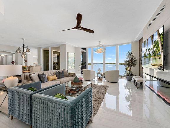 Embrace Isles of Capri Waterfront Luxury Living with playful dolphins! Experience unparalleled views and sophisticated design in this exceptional residence overlooking the Gulf of Mexico, Marco River, and serene island waterways. Located in the exclusive, gated Twin Dolphins community, this spacious three-bedroom, three-and-a-half-bath home offers refined living with five private balconies total bordering each side—each framing a unique perspective of Southwest Florida's natural beauty.Elegant Interiors, Thoughtful Details: Step inside to gleaming updated end unit with 48x48 inch Italian porcelain tile throughout, soft recessed lighting, and hurricane-impact doors and windows for security and peace of mind. A tray ceiling entryway and generous closets set a refined tone. The heart of the home is a beautifully appointed Chef kitchen with quartz countertops, custom soft-close cabinetry, and an adjacent open-concept dining and family room that flows seamlessly to the lanai. Spaces to Relax or Entertain: A separate living room invites you to unwind with a cozy fireplace, designer wallpaper, and a built-in wine cabinet—perfect for entertaining. Each room is designed to maximize light, views, and comfort. Luxurious Bedrooms and Spa-Like Retreats: The primary suite offers a private balcony, tray ceiling, and tranquil views. Its spa-inspired bath features a soaking tub, walk-in shower, quartz double vanity, and dual walk-in closets illuminated by a stunning arched window. Guest rooms offer walk-in closets, private balconies, and stylish en-suite baths, creating ideal accommodations for family or visitors. Outdoor Living at Its Best: Savor Gulf sunsets and peaceful mornings across five balconies, each offering a front-row seat to Southwest Florida's natural splendor. Exclusive Community Amenities: Residents enjoy resort-style features including a waterside pool and spa, tennis courts, fitness center, sauna, library, billiards, guest suites, and access to a private pontoon boat—perfect for exploring nearby islands. Unmatched Location: Just minutes from beaches, Naples 5th Avenue, Marco Island, boutique shopping, golf, fine dining, museums, and the executive airport—this home isn't just a residence, it's a lifestyle. Claim your slice of paradise today.