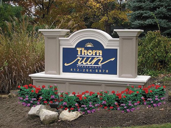 Nestled on 40 acres of beautifully landscaped grounds, Thorn Run offers 1, 2 and 3 bedroom apartment homes. We're a pet friendly community and feature oversized floor plans, high ceilings, large closets and additional storage lockers available with every unit, plus much more. On our property, you will find a fitness center, swimming pool, tennis court, community garden, playground, EV charger, and tons of open space!